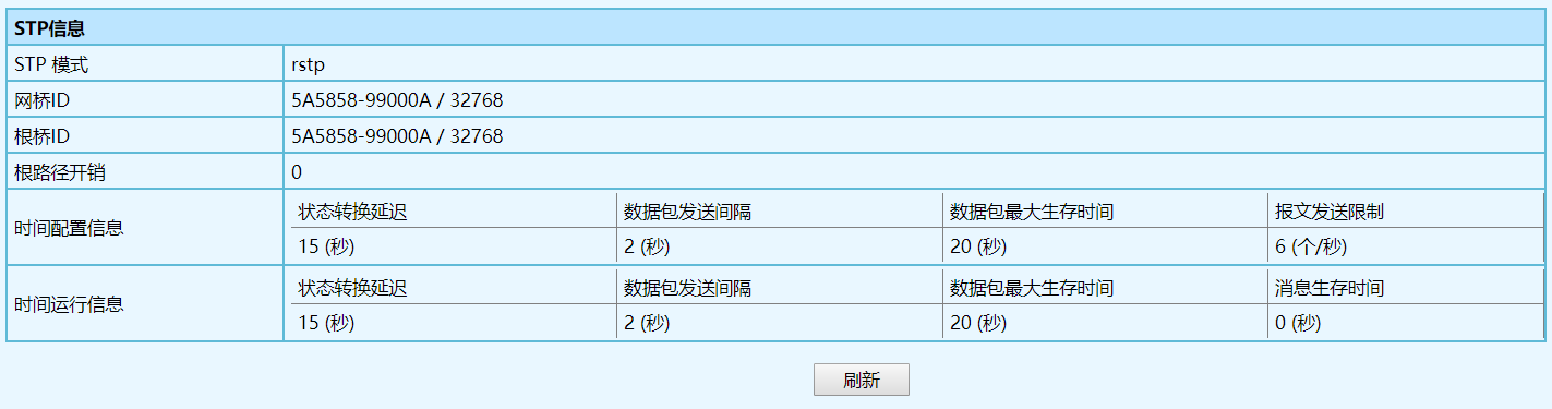 | STP 模式 | 當(dāng)前的 STP 模式,支持 RSTP,兼容 STP |