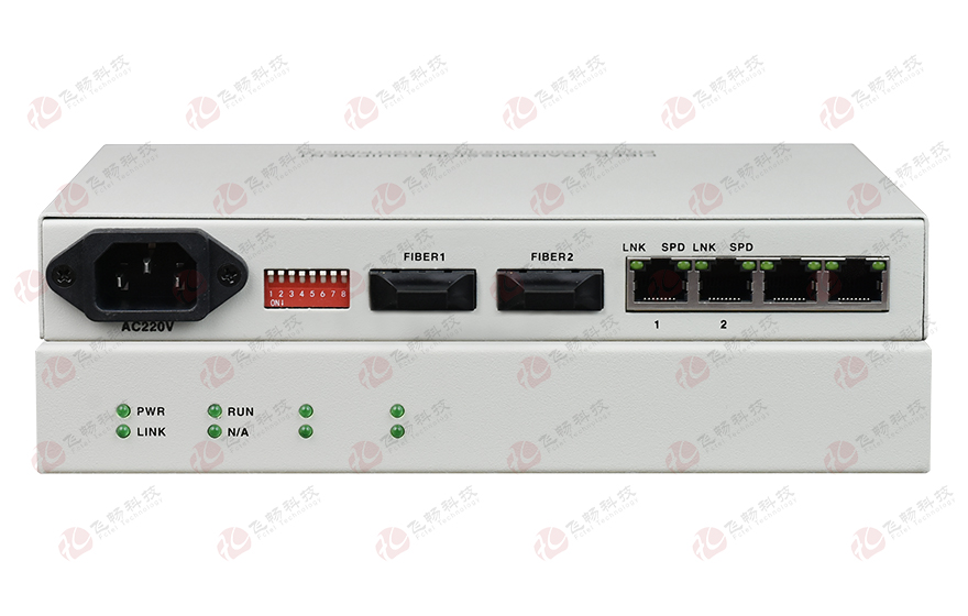 本光纖收發(fā)器具有2個以太網光接口,2個以太網電接口。這4個以太口為交換口,可以通過2個光纖接口進行級聯,方便用戶進行鏈型組網。以太網接口10M/100M自適應,支持VLAN協議。