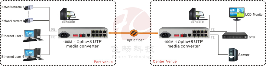 The device supports a maximum multimode fiber optic cable distance of 20/40/60/80/120 kilometers providing a simple solution for connecting 10base-T/100base-Tx Ethernet networks to remote locations support the 10/M/100M/Ethernet transmission using SC-terminated multimode fiber while delivering solid network performance and scalability. Support optical interface and Ethernet interface.