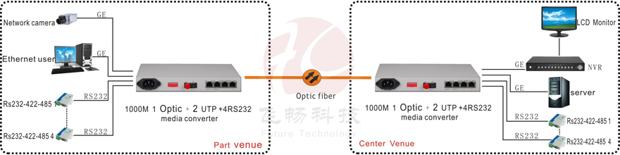 Description:single core optice fiber transmission 2 * 10/100/1000M network port and 4 * RS232/422/485 interface