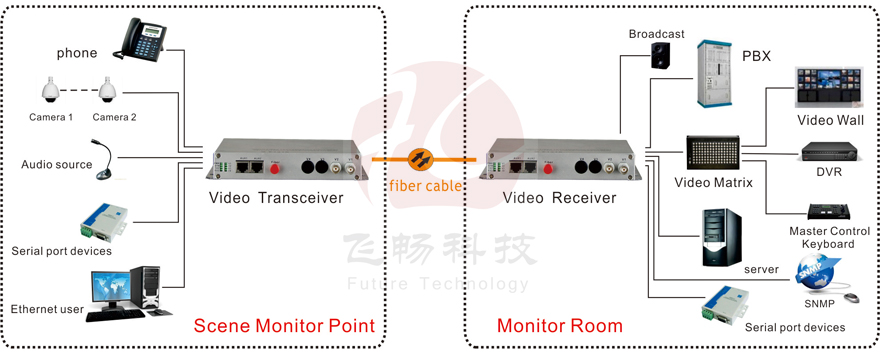 This digital video optical transceiver adopts digital video encoding and gigabit optical fiber transmission technology. The multi-channel single-direction bi-direction audio, video, data, telephone, Ethernet and switch real-time synchronization, no-distortion and high quality transmission is on the single-core or dual-core optical fiber. Complete digital video non-compression transmission technology, with video and data condition indicator, can monitor the system normal operation. It uses modular design, the user can flexibly select or customize configuration based on the scene occasion. Rack installation or desktop installation can be optional. This product is made up of optical transmitter and receiver. It can transmit simultaneously 2Channel forward direction video, audio, data, phone, E1, Ethernet and switch.