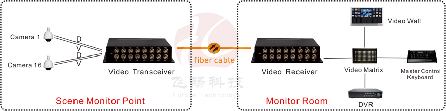 This digital video optical transceiver adopts digital video encoding and gigabit optical fiber transmission technology. The multi-channel single-direction bi-direction audio, video, data, telephone, Ethernet and switch real-time synchronization, no-distortion and high quality transmission is on the single-core or dual-core optical fiber. Complete digital video non-compression transmission technology, with video and data condition indicator, can monitor the system normal operation. It uses modular design, the user can flexibly select or customize configuration based on the scene occasion. Rack installation or desktop installation can be optional. This product is made up of optical transmitter and receiver. It can transmit 16Channel forward direction Video and 1Channel reverse direction RS485 data.