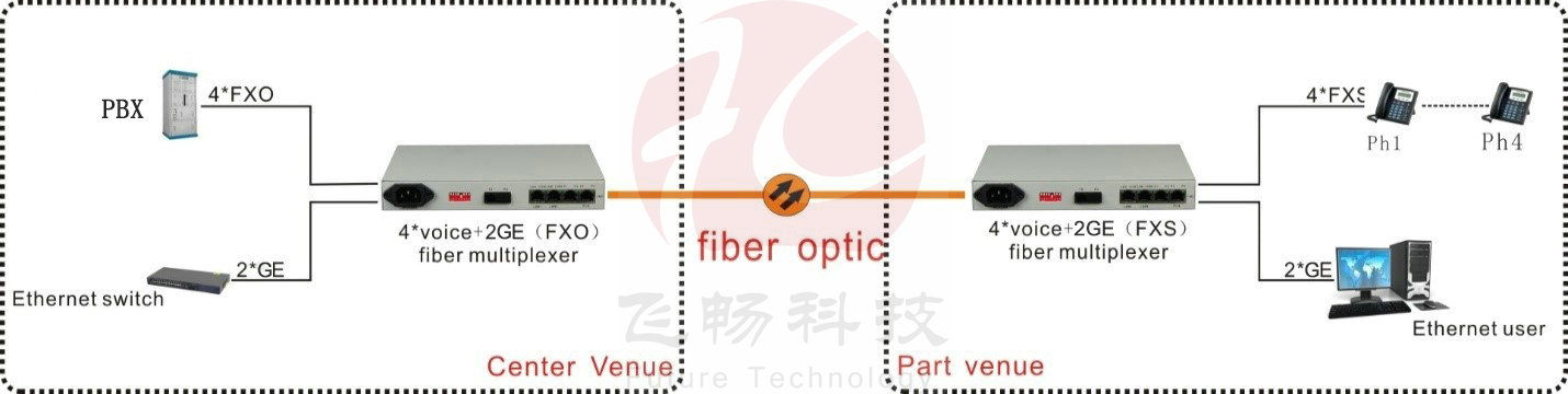 Fiber-4Voice+2GE multiplexer(Mini type)